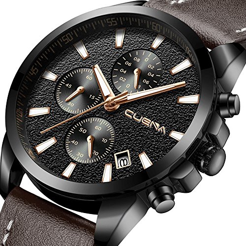 Mens Analog Quartz Wrist Watch - 30M Waterproof Watch with Brown Leather Band,Classic Business Casual Large Face Watches with Calendar Date Window for Men Highlights: - Full functional chronograph sub-dials. - Features luminous hands and hour...