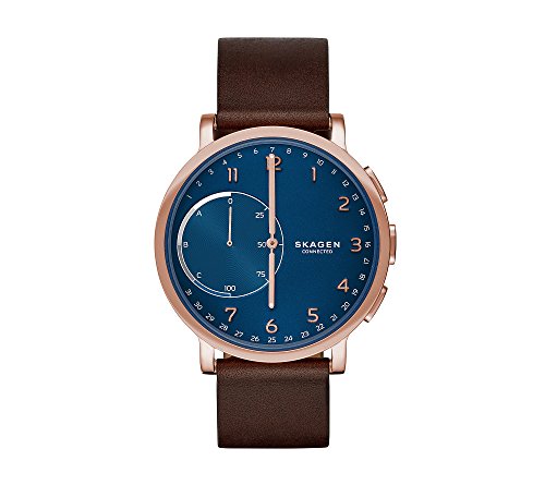 This stylish Hagen Connected hybrid smartwatch from Skagen combines innovative technology with classic design. Featured in blue/brownSize: 42 MMBand Width: 20 MMAutomatic time and date adjustmentActivity and goal...