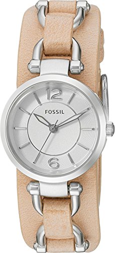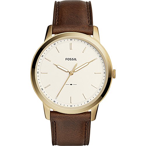 For a subtle sense of mystery just add this luxury timepiece from Fossil®. Stainless steel case back. Leather strap with buckle closure. Round face. Three-hand analog display with quartz movement. White dial features silver-tone hands and hour...