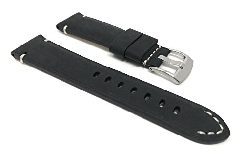 20mm to 24mm, Vintage Watch Band Strap, Genuine Leather, Black, Brown, Tan & Blue, White Stitch, Stainless...