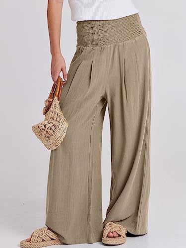 Click for More Images Size - S=US(4-6), M=US(8-10), L=US(12-14), XL=US(16-18), XXL=US(20-22), see details in rich descriptionFeature - Smocked high waist, wide leg, loose fit lounge pants with pockets, linen beach pants for women cover up, flowy...