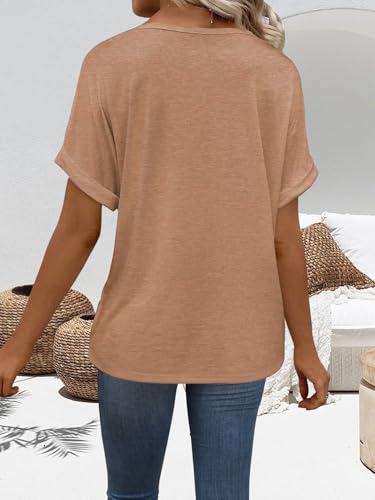 Click for More Images Material: Beach vacation clothes for women light weight,elastic fabric,not see-through,breathable and comfortable wearStylish Design Features: V neck t shirts for women 2025 ,Unique Design Casual V-neck T-shirt,flowy casual...