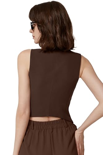Click for More Images Stylish Design: The QINSEN Womens V Neck Vest Top features a chic sleeveless design with button-down detailing, accentuated by elegant stitching on both front and back, enhancing your silhouette for a fashionable...