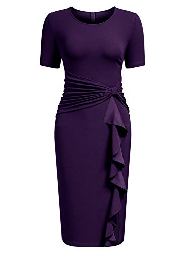 AISIZE Women’s 50s Vintage Ruffle Draped Short Sleeve Bodycon Cocktail Knee Dress