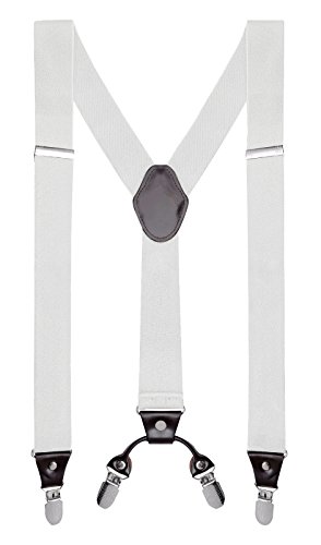 - STYLE AND DESIGN: These Y back design suspenders come with 4 clips and are made with the most comfortable elastic for daily comfort, and added leather crosspatch for that classic appearance