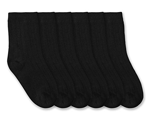 This 6 pair pack includes 6 pairs of classic rib crew socks. Cotton blend adds soft fit and comfort. Ideal for everyday, school, uniform, events, dress, shoes, casual wear, and play time. A variety of colors include chocolate brown, black, dark charcoal, white, khaki, and navy blue.