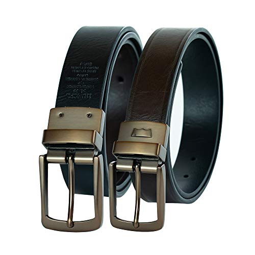 • REVERSIBLE CONSTRUCTION: Reversible construction with srotative buckle to reverse with ease from one side to another. Pull appart the buckle at the hinge while rotating it and put it back in place to use your belt one way or another