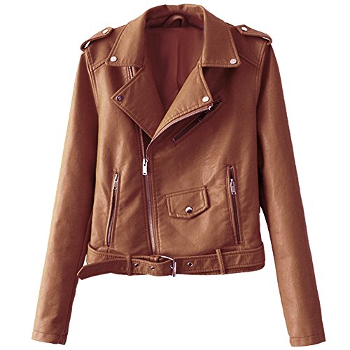 Chenghe Women’s Faux Leather Motorcycle Zip up Short Bomber Jacket Brown XXL