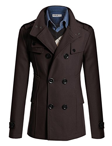 Doublju Mens Slim Fit Wool-Blend Double Breasted Collar Coat