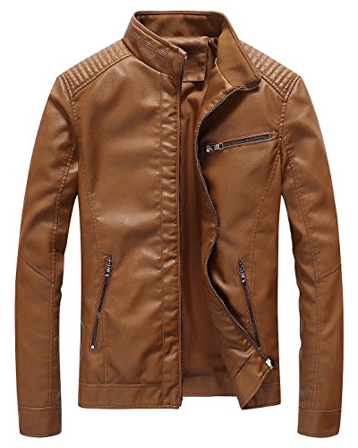 Fairylinks Leather Jacket Men Slim Fit Motorcyle Lightweight ,Brown,Large