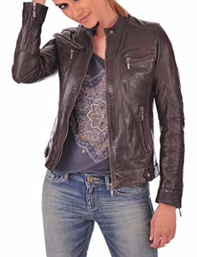 Prim leather Women’s Lambskin Leather Bomber Biker Jacket Small Brown