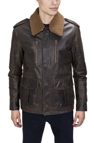 United Face Mens Distressed Leather Military Jacket X-Large Brown