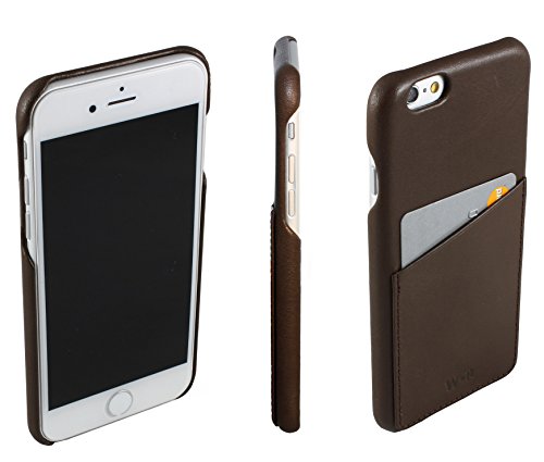 Apple iPhone 8, 7 and iPhone 6/6s Premium Genuine Leather Case – Carrying Sleeve – Slim Fit Cover with Card Slots (Dark Brown)
