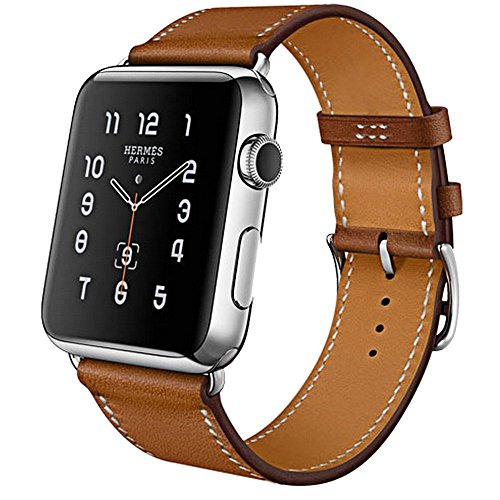 Apple Watch Band, 38mm [Business Series] Apple Watch Leather Band Cow Leather Replacement Band for 38mm Apple Watch/Sport/Edition Series 1 and Series 2 (Brown 38mm)