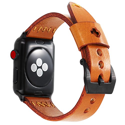 Home » Electronics » Apple Watch Retro Leather Bands, Ezzdo Handmade Bump Genuine Leather Replacement Strap Men Women Brown Bracelet For Iwatch 38mm 42mm Series 1/2/3 (Light Brown 42mm)