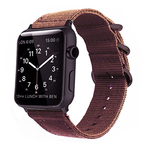 Brown Nylon Compatible Apple Watch Band 38mm/42mm NATO Replacement Wrist Woven Strap with Black Steel Adapters&Buckle Compatible iWatch Band Series 3,2,1 Sport Nike+ Men&Women