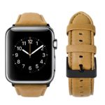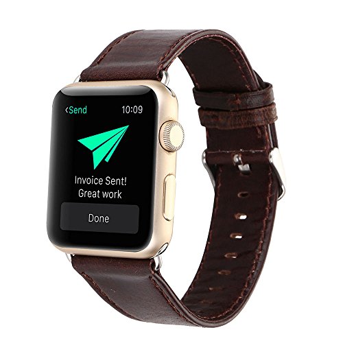 Conelelife Apple Watch Band, Genuine Leather Replacement Strap Band with Stainless Steel Metal Clasp for Apple Watch Series 2, Series 1, Sport, Edition (42mm Dark Brown)