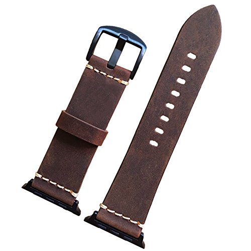EACHE Genuine Leather Watch Band 42mm Brown Crazy Horse Calfskin Leather Strap Apple Watch Iwatch Series 1,2,3 Black Adapter