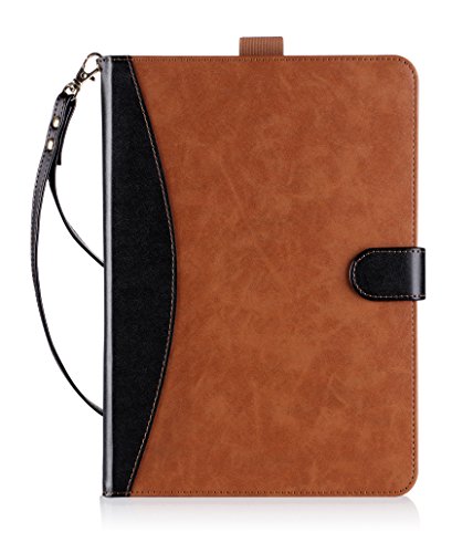 FYY Samsung Galaxy Tab S3 9.7 Case – Premium PU Leather Case Stand Cover with Card Slots, Note Holder, Hand Strap for Galaxy Tab S3 9.7 inch Dark Brown & Black (With Auto Wake/Sleep)
