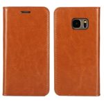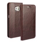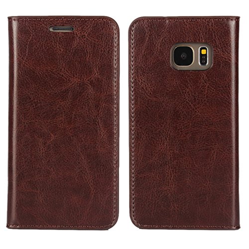 Galaxy S7 Wallet Case, Jaorty Genuine Leather Folio Flip Case Cover Book Design with Kickstand Feature with Card Slots/Cash Compartment for Samsung Galaxy S7 (5.1″) – Dark Brown