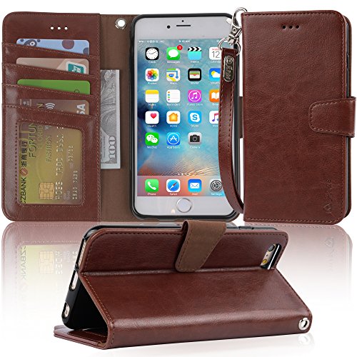 Iphone 6s Plus Case, iphone 6 plus case, Arae [Wrist Strap] Flip Folio [Kickstand Feature] PU leather wallet case with ID&Credit Card Pockets For Apple Iphone 6 plus/ 6S Plus 5.5 (Dark Brown)