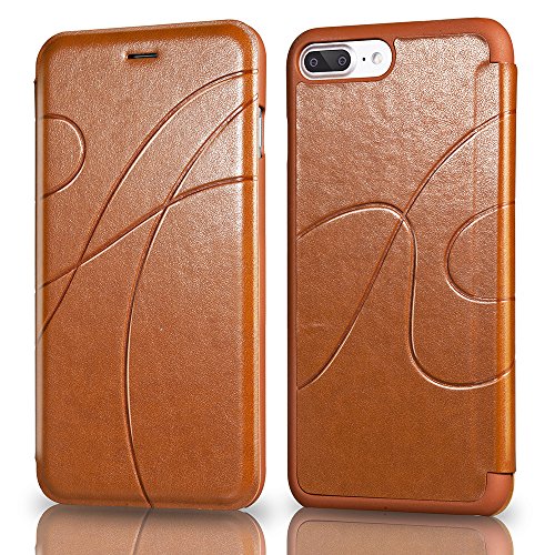 iPhone 8 Plus Case, iPhone 7 Plus Case, Reexir Slim Leather Folio Flip Wallet Case Cover with Card Holder for Apple iPhone 8 Plus / iPhone 7 Plus (Light Brown)