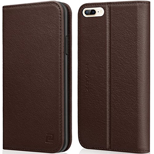 iPhone 8 Plus case iPhone 7 Plus case ZOVER Genuine Leather Case Wallet Cover with Kickstand Feature Card Slots & ID Holder and Magnetic Closure for iPhone 7 Plus iPhone 8 Plus Dark Brown