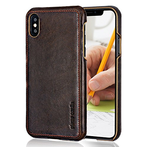 iPhone X Case, Pierre Cardin Genuine Cowhide Protective Hard Back Cover for iPhone X (Dark Brown)