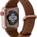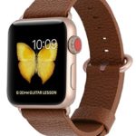 JSGJMY Apple Watch Band 38mm Women Dark Brown Genuine Leather Loop Replacement Wrist Iwatch Strap with Series 3 Gold Metal Clasp for Apple Watch Series 3 Gold