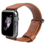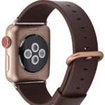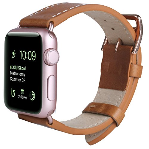 JSGJMY Apple Watch Band 38mm Women Genuine Leather Wrist Strap Replacement Bracelet with Stainless Metal Clasp for iWatch Series 2/Series 1/ Edition/Sport(Light Brown+Rose Gold Buckle)