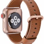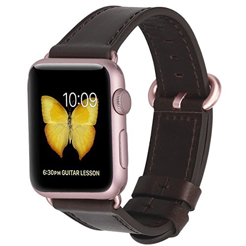 JSGJMY Compatible Iwatch Band 38mm 40mm Women Genuine Leather Loop Replacement Strap Compatible Iwatch Series 4 3 2 1 Sport Edition(38mm 40mm S/M,Dark Brown+Rose Gold Buckle)