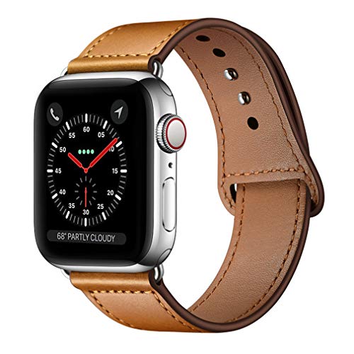 KYISGOS Compatible with iWatch Band 44mm 42mm, Genuine Leather Replacement Band Strap Compatible with Apple Watch Series 4 Series 3 Series 2 Series 1 42mm 44mm, Light Brown
