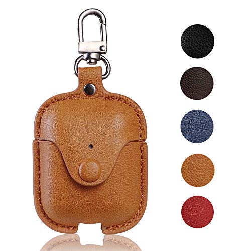 Home » Electronics » Leather Case for AirPods with Keychain, Yoelike Premium Leather Vintage Portable Shockproof Protective Cover for Apple AirPod Earphones Charging Case (PU-Light Brown)
