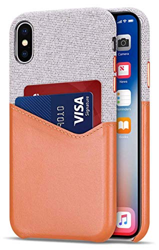 lopie [Sea Island Cotton Series] Slim Card Case Compatible for iPhone Xs Max 2018, Fabric Protection Cover with Leather Card Holder Slot Design – Light Brown