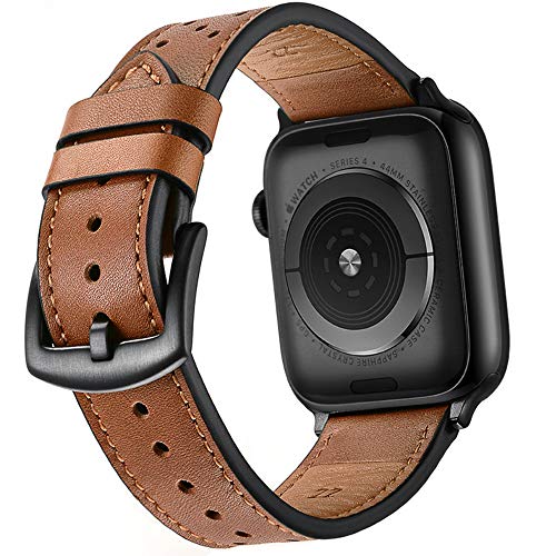 - PREMIUM LEATHER – 3mm thick Strap made of Genuine Soft Leather with Anodized Black Stainless Steel Clasp constructed by premium craftsmanship to match black watch face. The new apple watch adapter does not require screws to connect the pin. Thus, you do not need to worry about the watch band will separate from the adapter like other apple watch band does. Best Apple Watch dress band option.
