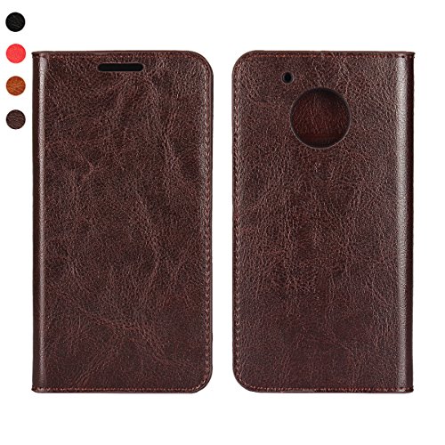 Moto G5 Plus Case, bdeals Premium Genuine Leather Wallet Stand Cover Flip Case for Motorola Moto G5 Plus (2017) (Vintage brown)