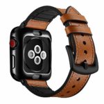 - Unique Design: The watch band’s outer surface is made of high quality genuine leather and the back is nature black silicone rubber. It is a hybrid sweatproof strap, comfortable and lightweight to wear.