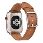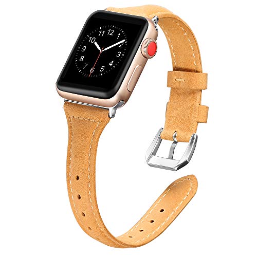 Secbolt Leather Bands Compatible Apple Watch Band 38mm 40mm Stainless Steel Buckle Replacement Slim Wristband Sport Strap Iwatch, Series 4/3/ 2/1, Edition, Light Brown