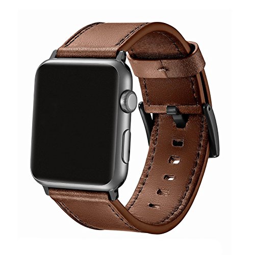 - High Quality:100% Genuine Leather Band-Premium pull up leather with fashionable craftsmanship, stylish design, comes with stainless steel classic buckle, anti-slip & sweat-absorbent. Genuine leather band will be a bit of stiff and not shiny color when you received it ,it is normal situation,don’t worry ,the strap it will be softer and more shiny after you wear it more times.It need time to let the strap fit your wrist.Please give some time for yourself and the leather strap.