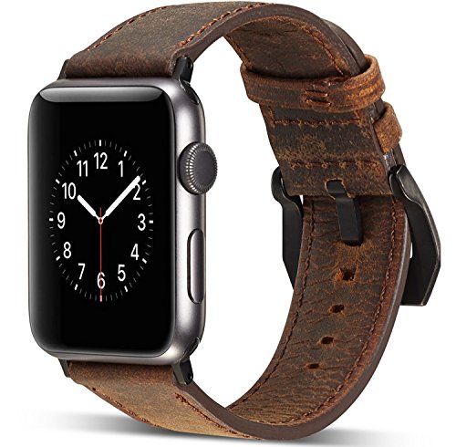 Watruer Compatible Apple Watch Band, 38mm Genuine Leather iwatch Strap Replacement Band with Stainless Metal Clasp for Apple Watch Series 3 Series 2 Series 1 Sport and Edition – Dark Brown