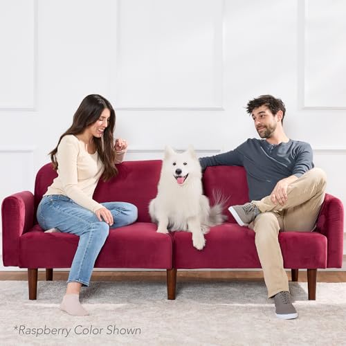 Best Choice Products 77″ Mid Century Modern Velvet Loveseat Sofa, Couch, Convertible Sofa Sleeper Bed w/Real Wood, Removable Armrest – Mocha Brown