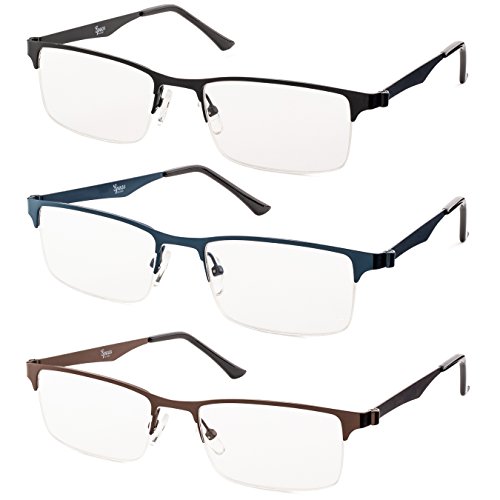 Metal Half Rimmed Reading Glasses (Black, Brown, Blue)Includes-Case and Cleaning Cloth +2.00 3-Pack