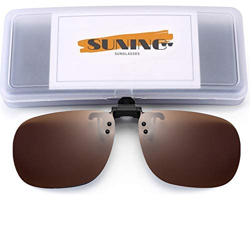 SUNINC Clip On Sunglasses Over Prescription Glasses Polarized Lens Flip Up Shades Driving Sunglasses for Men Women Brown Lens Large Size