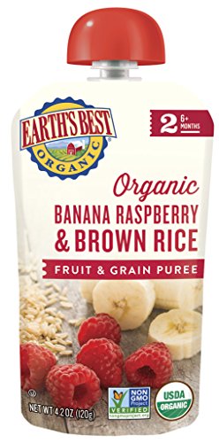 Earth’s Best Organic Stage 2 Baby Food, Banana Raspberry and Brown Rice, 4.2 oz. Pouch (Pack of 12)
