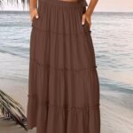 Trendy Queen Brown Skirt Summer Outfits Boho Maxi Skirts Swing Tiered A-Lin…