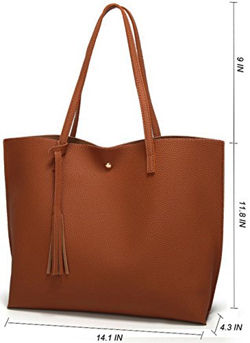 Dreubea Women’s Soft Faux Leather Tote Shoulder Bag from, Big Capacity Tassel Handbag Brown