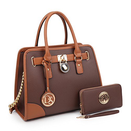 MMK collection Fashion Packlock Handbag for Women` Signature fashion Designer Purse with spring colors~Perfect Women Satchel Purse ~ Beautiful Designer handbag &purse(02-6892-coffee)