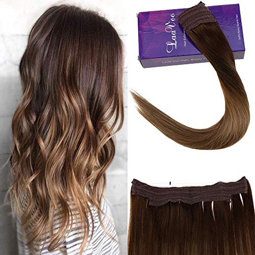 LaaVoo 16″ Adjustable Invisible Wire Halo Hair Extensions Balayage Color Medium Brown Mixed Light Brown with Dark Golden Blonde Halo Remy Human Hair Extensions 80 Grams Fashion Hair Color 11″ Width