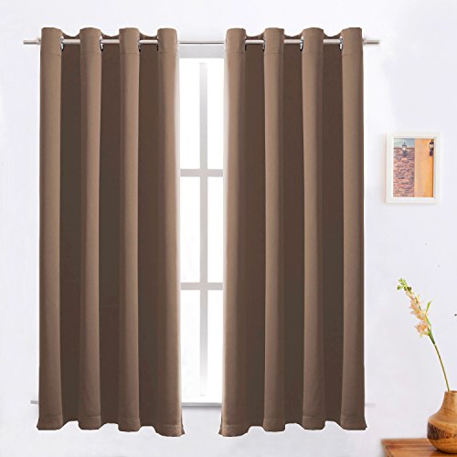 Blackout Curtains /Room Darkening/Light Blocking/Thermal Insulated Draperies With Solid Grommet for Bedroom/Living Room/Dining Room Window Treatments Cappuccino 2 Panels ,52 x 63 Inch By FLOWEROOM