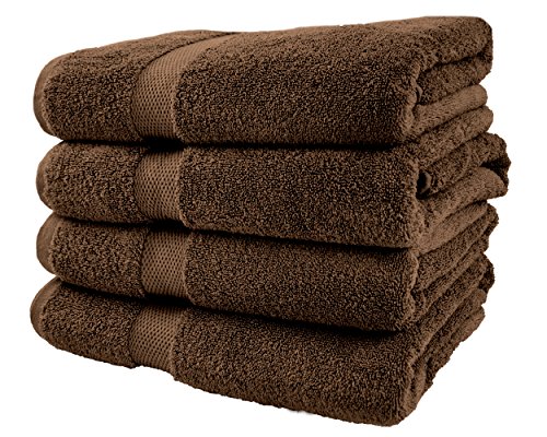 Cotton & Calm Exquisitely Plush and Soft Bath Towel Set, Chocolate/Dark Brown – 4 Large Bath Towels Set – Spa Resort and Hotel Quality, Super Absorbent 100% Cotton Luxury Bathroom Towels